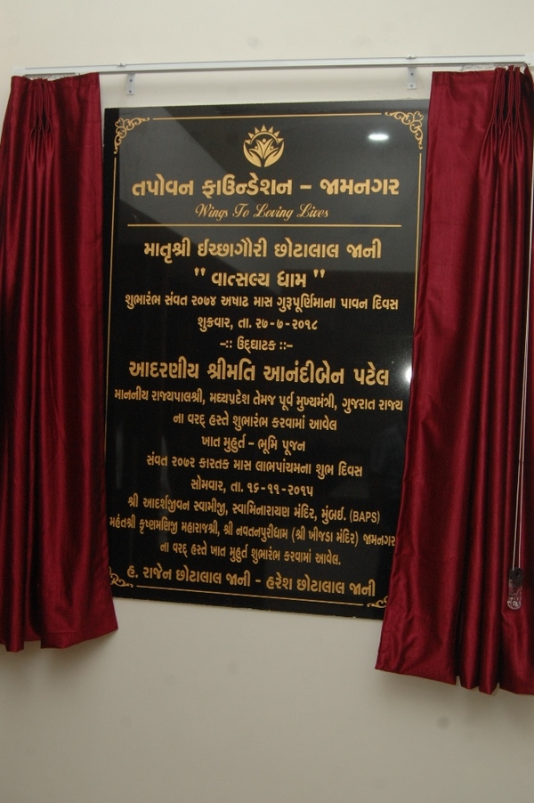 માતા પિતાના સંસ્કાર, ઘડતર અને આશિર્વાદથી તેમજ તેમની જીવન સંધ્યાના દિવસોમાં તેમના તરફથી મળેલ પ્રેરણાના ફળ રૂપે સમાજમાં રહેલ નિઃસંતાન, નિરાધાર અને નિઃસહાય વડીલોને જીવનના સંધ્યાકાળે વાત્સલ્યસભર અને કૌટુંબીક વાતાવરણ મળી રહે તેવું કોઈ કાર્ય કરવાનો મેં સંકલ્પ કર્યો, અને આ સંકલ્પના ભાગરૂપે મેં મારા મુંબઈ ખાતેના વેપારમાંથી નિવૃત્તિ લઇ આવો ઉંદહેતુ ચરિતાર્થ કરવા પોતાની દ્રષ્ટિ, પરિશ્રમ, સદ્ભાવ અને પ્રેમતીર્થ સમુ માતૃશ્રી ઈચ્છાગૌરી છોટાલાલ જાણી "વાત્સલ્યધામ" જામનગર ખાતે બનાવેલ અને આજે આ વિચારે મુર્તિમંત સ્વરૂપે વાસ્તવિક સ્વરૂપ ધારણ કર્યું છે.